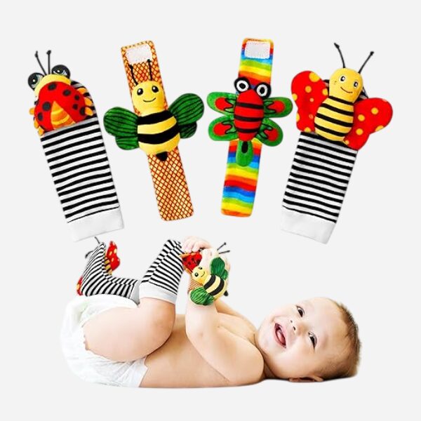 These socks and wrist rattles are made from soft, baby-safe materials, ensuring comfort and safety for your little one. The design helps encourage movement as babies shake their hands and feet, strengthening their motor skills and hand-eye coordination. These toys make an excellent gift for baby showers, birthdays, or any occasion celebrating a newborn.